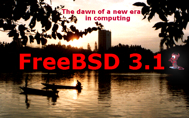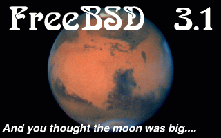 William "Bill" Lloyd Comments: Started out with the logo from the FreeBSD website and added some text to commemorate the release of FreeBSD 3.1. File: logo-31.bmp (320x200) |